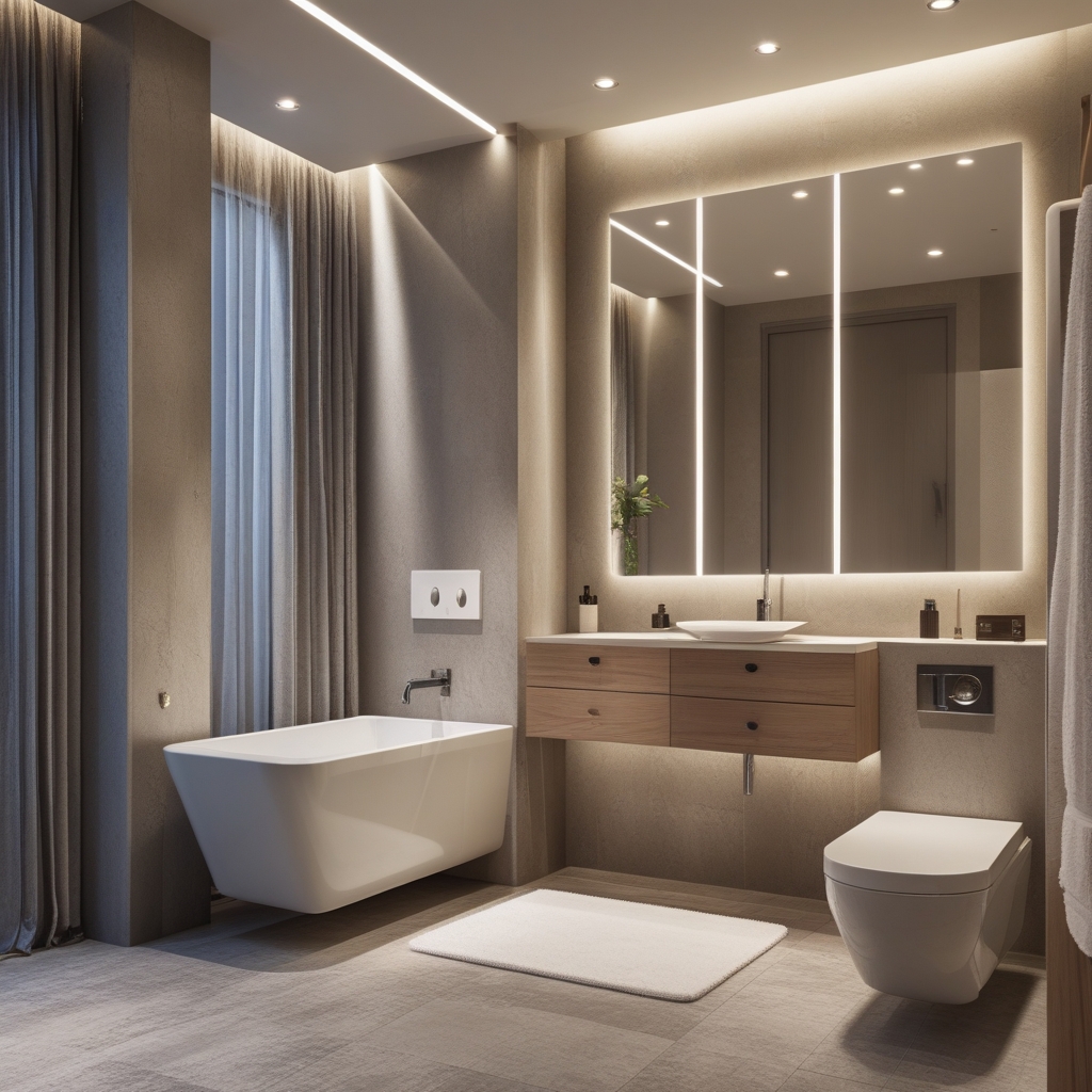 No banheiro, a combinação de luz natural e artificial é decisiva para criar um ambiente limpo e funcional. Assim, uma iluminação perfeita deve ser clara e sem reflexos, facilitando tarefas como a maquiagem e o cuidado pessoal.